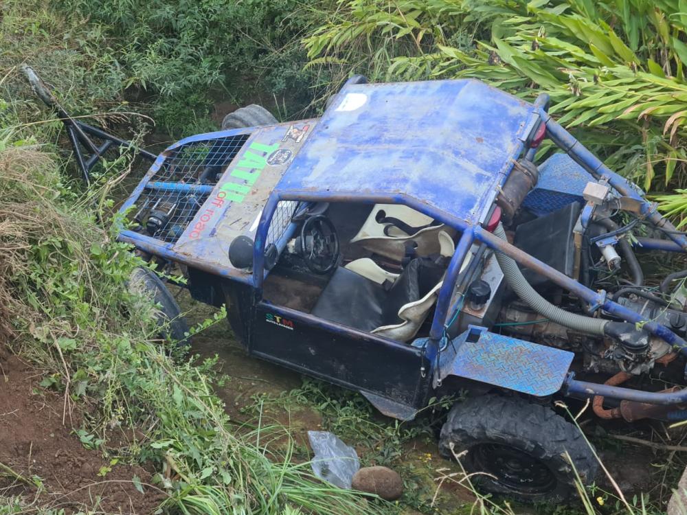 Motorista de 23 anos perdeu o controle do veículo e caiu em um buraco. Uma adolescente de 15 anos também sofreu ferimentos.