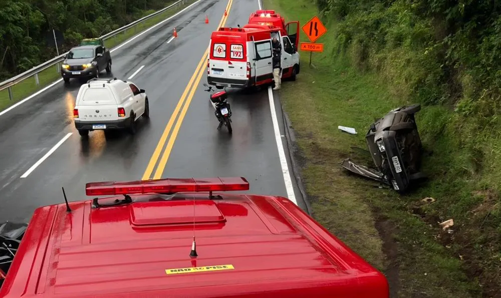 Capotamento deixa homem ferido na BR-470, em Bento Gonçalves