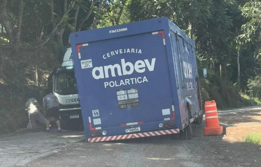 Obra parada causa acidente com caminhão no Vale dos Vinhedos