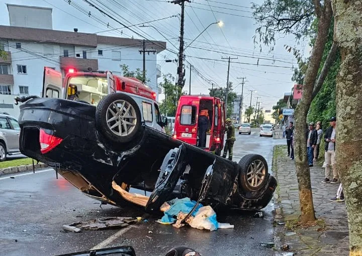Mulher fica ferida em capotamento de veículo em Bento Gonçalves