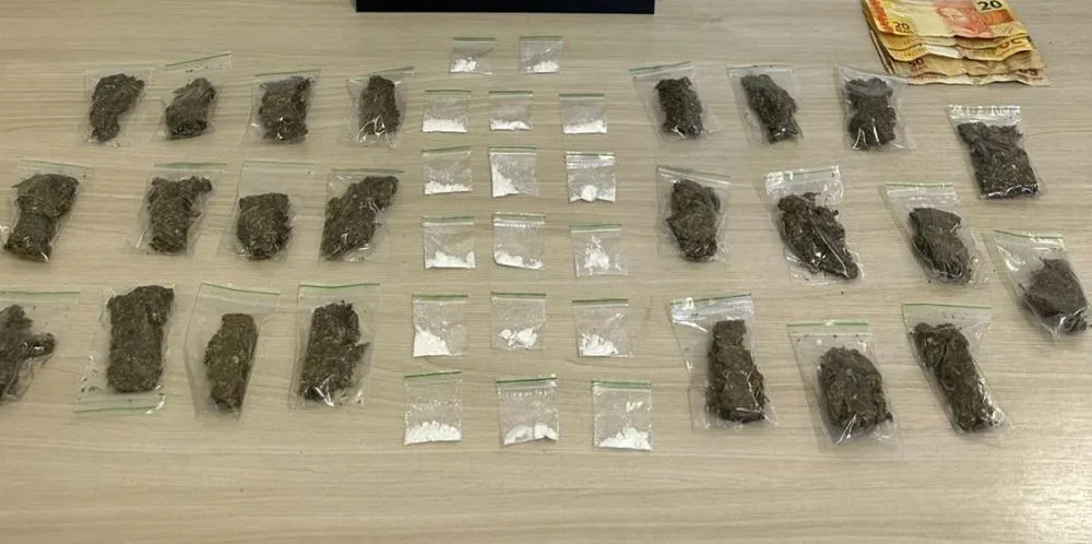 Indivíduo de 22 anos estava com maconha e cocaína embalada para venda no bairro Cidade Alta.