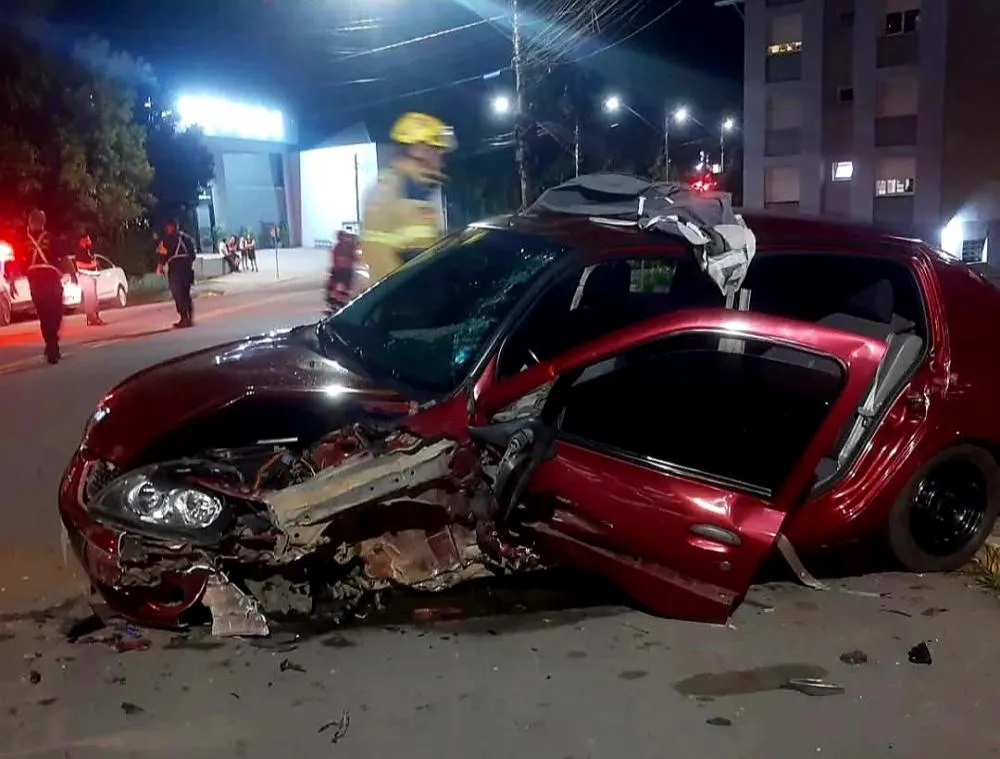 Um Renault Clio e um Citroën C4 colidiram violentamente no bairro Botafogo na noite desta sexta-feira, 20.