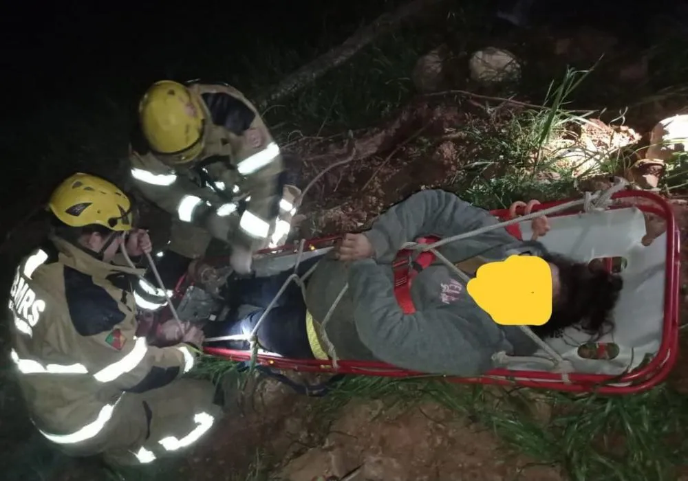 Mulher é resgatada em ribanceira pelo Corpo de Bombeiros