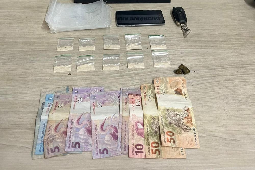 Agentes policiais localizaram sob posse do indivíduo porções de cocaína prontas para a venda, além de objetos ligados à comercialização de drogas.