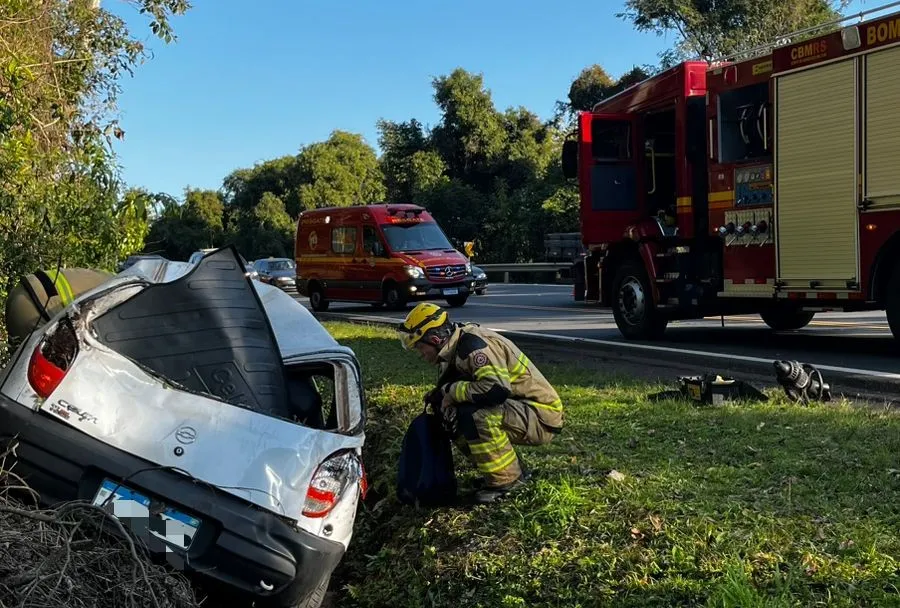 Homem de 32 anos perdeu o controle do veículo no quilômetro 211 da rodovia, em Bento Gonçalves.