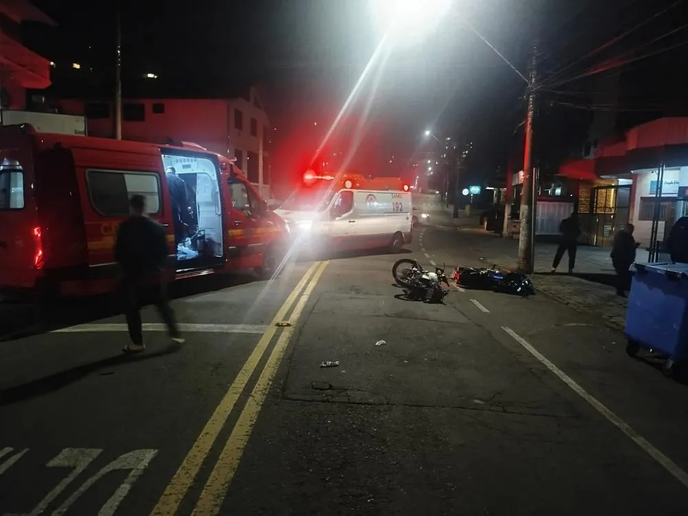 Acidente ocorreu na noite desta segunda-feira, 21,, no bairro Borgo; vítimas foram encaminhadas ao Hospital Tacchini.