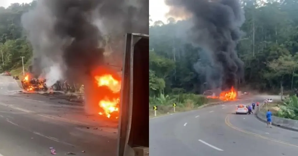 A batida envolveu uma carreta, um micro-ônibus e um carro de passeio que pegaram fogo.