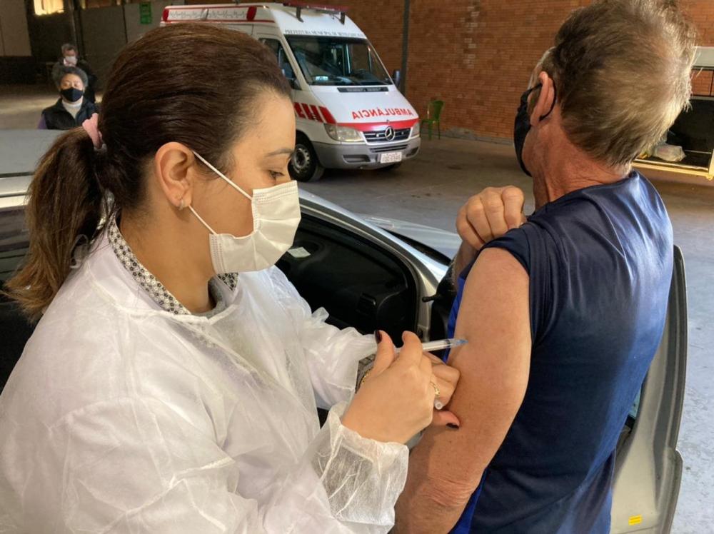 O drive-thru, na Fundaparque, foi realizado para os nascidos até 31 de julho de 1952 e que foram imunizados no dia 27 de março.