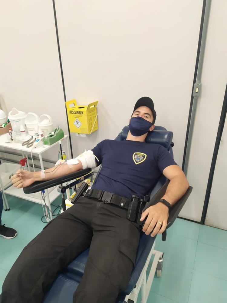 Guardas da GCM de Bento Gonçalves realizam doação de sangue no Hemocentro
