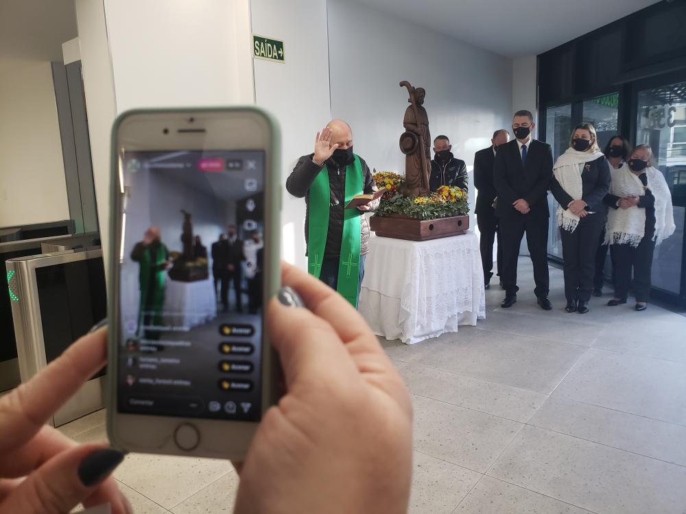 Presença da imagem do santo foi uma forma de homenagear a todos que estão atuando na linha de frente no combate à Covid-19 na casa de saúde de Bento Gonçalves.