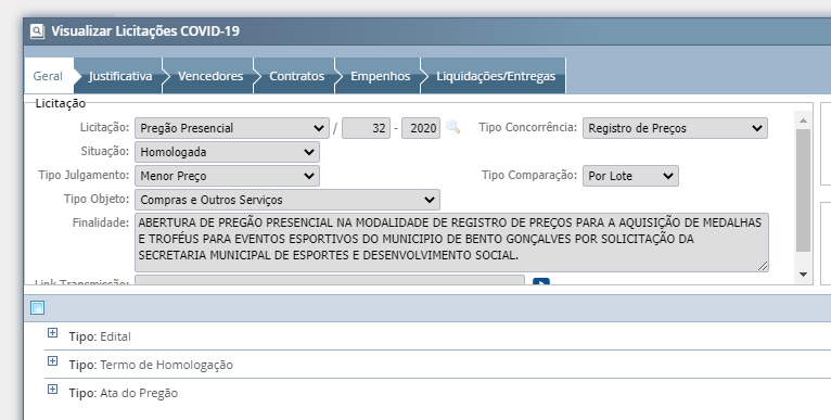 Transparência mostra compra de troféus e medalhas com recursos da Covid-19 em Bento Gonçalves