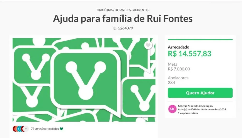 Doações para família de homem assassinado em Bento ultrapassam R$ 14 mil