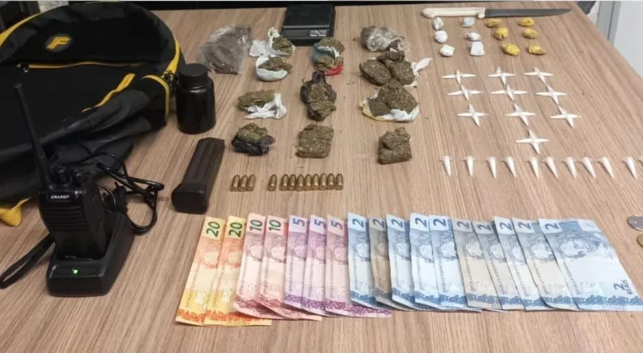 Policiais da BM flagraram adolescente de 15 anos com drogas e munições de pistola, além de drogas na casa onde os dois moravam.