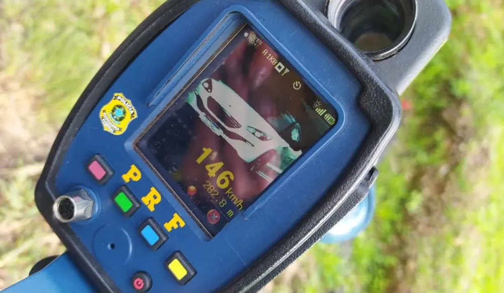 Agentes da Polícia Rodoviária Federal (PRF) flagraram um motorista andando em seu veículo a mais de 140 quilômetros por hora.