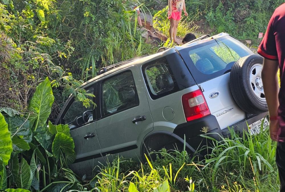 Ford Ecosport caiu em um buraco no acostamento na tarde deste domingo, 7, no distrito de São Pedro.