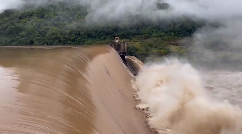 Na manhã desta terça-feira (5), a vazão do Rio das Antas permaneceu com níveis altos, porém com a tendência de redução.