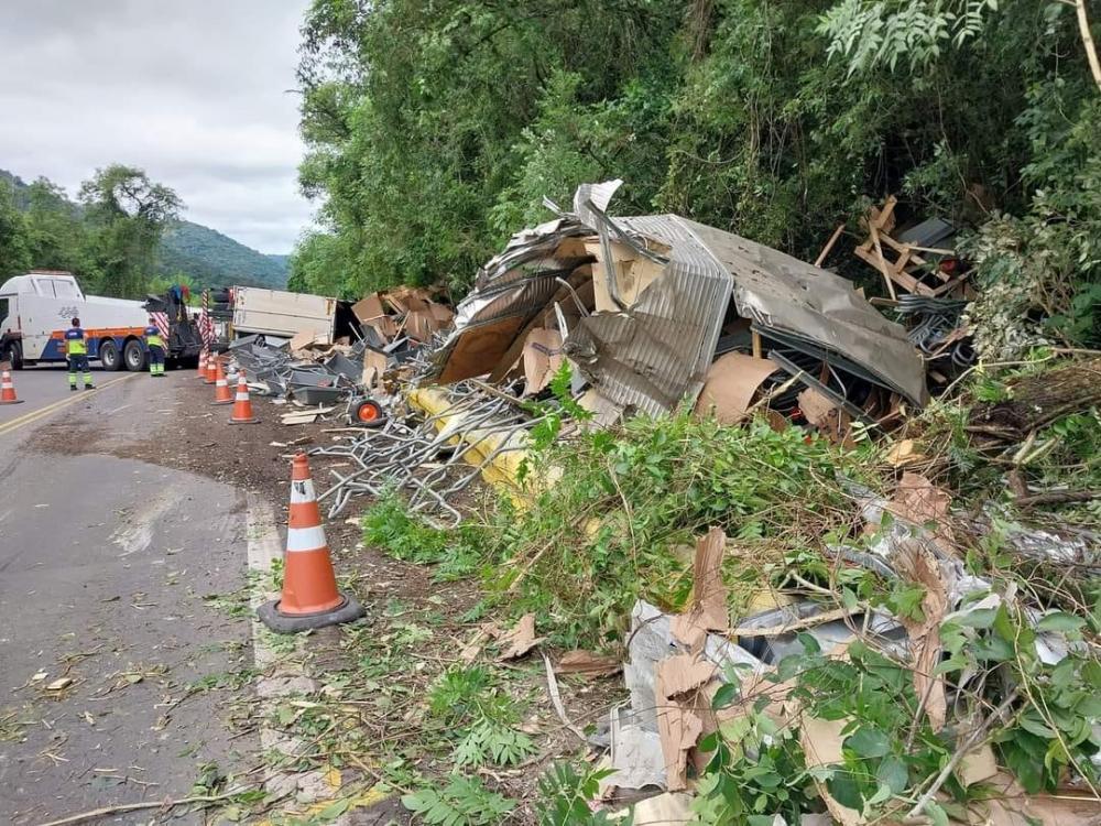Carreta tomba na ERS 446 em Carlos Barbosa