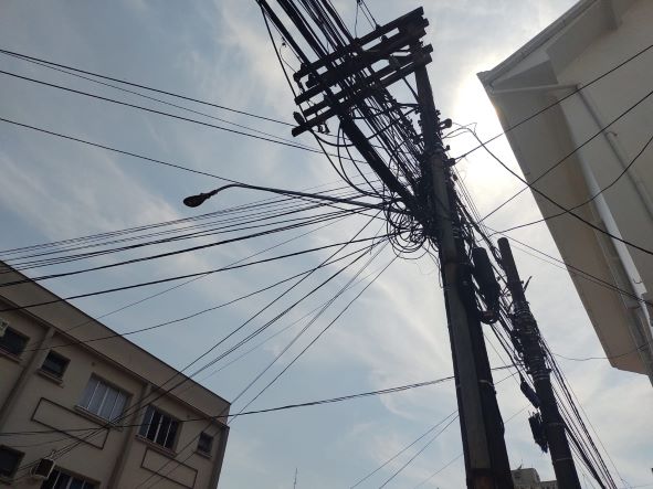 Após dois meses, prefeitura de Bento retoma retirada de fiação dos postes na área central