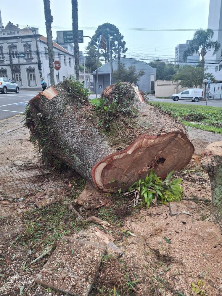 Segundo a Prefeitura de Bento Gonçalves, havia o risco iminente de queda da árvore, por isso foi necessário o corte total da mesma.