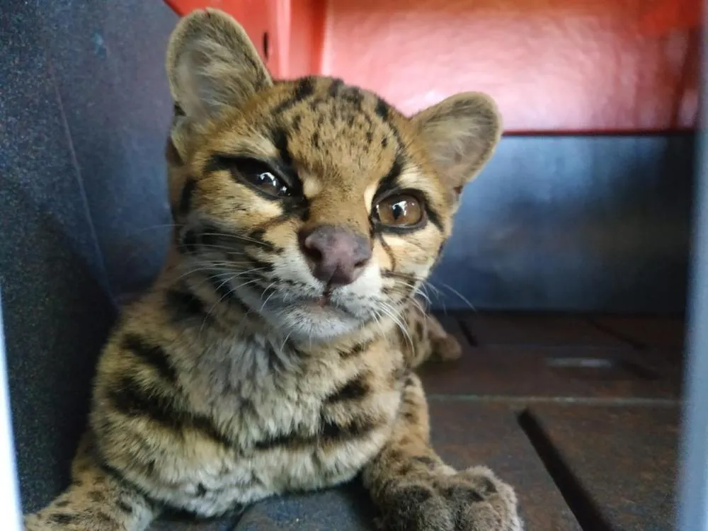 Filhote de gato-maracajá é resgatado pelos policiais da Patram