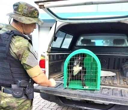 O animal estava ferido em uma das patas e foi encaminhado para o atendimento veterinário.