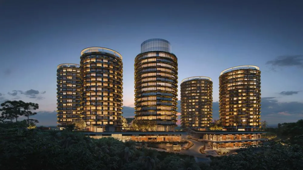 Com cinco torres redondas de 16 andares e mais de 133 mil m² de área construída, o empreendimento traz um conceito inédito para a região: