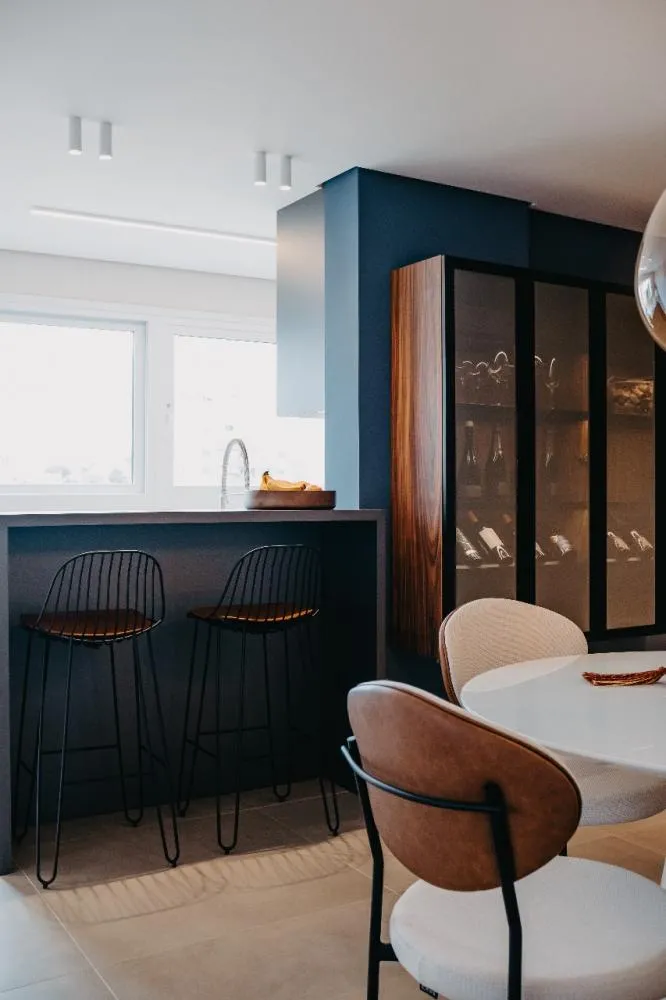 Os eletrodomésticos compactos são aliados indispensáveis nas cozinhas pequenas. Cooktops de quatro bocas são uma ótima opção, assim como o forno de embutir instalado abaixo do mesmo e a geladeira slim de 375 litros. “O micro-ondas de bancada também é bastante funcional nessas situações, já que a torre de eletros costuma ser restrita”. Pamela explica que ele pode ser acomodado em nichos ou até mesmo dentro dos armários aéreos, contribuindo para uma estética mais clean e para a funcionalidade do espaço.