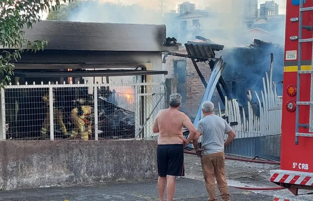 De acordo com as primeiras informações apuradas no local, as chamas consumiram uma casa mista — parte construída em material e parte em madeira — e a estrutura teve perda total, com o fogo se alastrando rapidamente principalmente na área de madeira do imóvel.