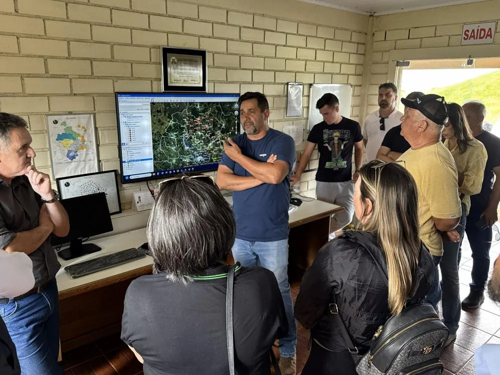 Fraiburgo: visita a geradores e explicação do monitoramento climático, com recepção do meteorologista João Rolim, da empresa AGF, responsável pela operação e acompanhamento do sistema no Estado;