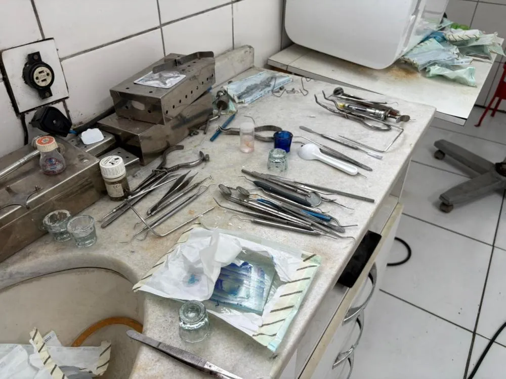 No local, as equipes de fiscalização se depararam com um cenário alarmante e condições consideradas degradantes para o atendimento a pacientes. A Vigilância Sanitária lavrou um termo de interdição imediata ao constatar o uso de equipamentos obsoletos, o descarte irregular de resíduos infectocontagiosos, insumos com o prazo de validade expirado e, o mais grave, o uso de instrumental clínico (como pinças e seringas) sem a devida esterilização.
