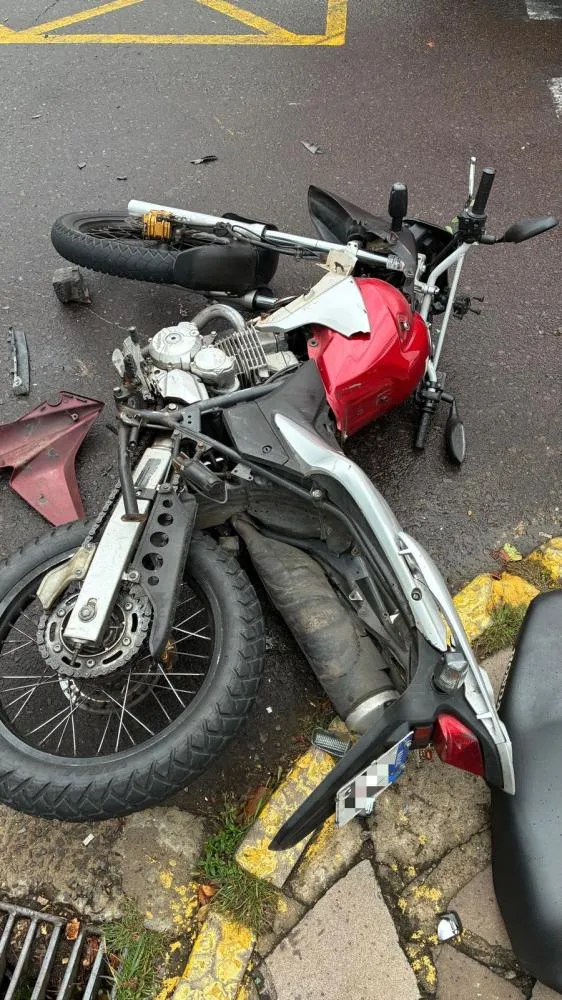 Um acidente de trânsito mobilizou equipes de resgate na Avenida Osvaldo Aranha, em Bento Gonçalves, nesta sexta-feira (24). A ocorrência, registrada via telefone de emergência 193, envolveu uma motocicleta Honda XRE vermelha e um automóvel VW Saveiro branco em uma colisão transversal.