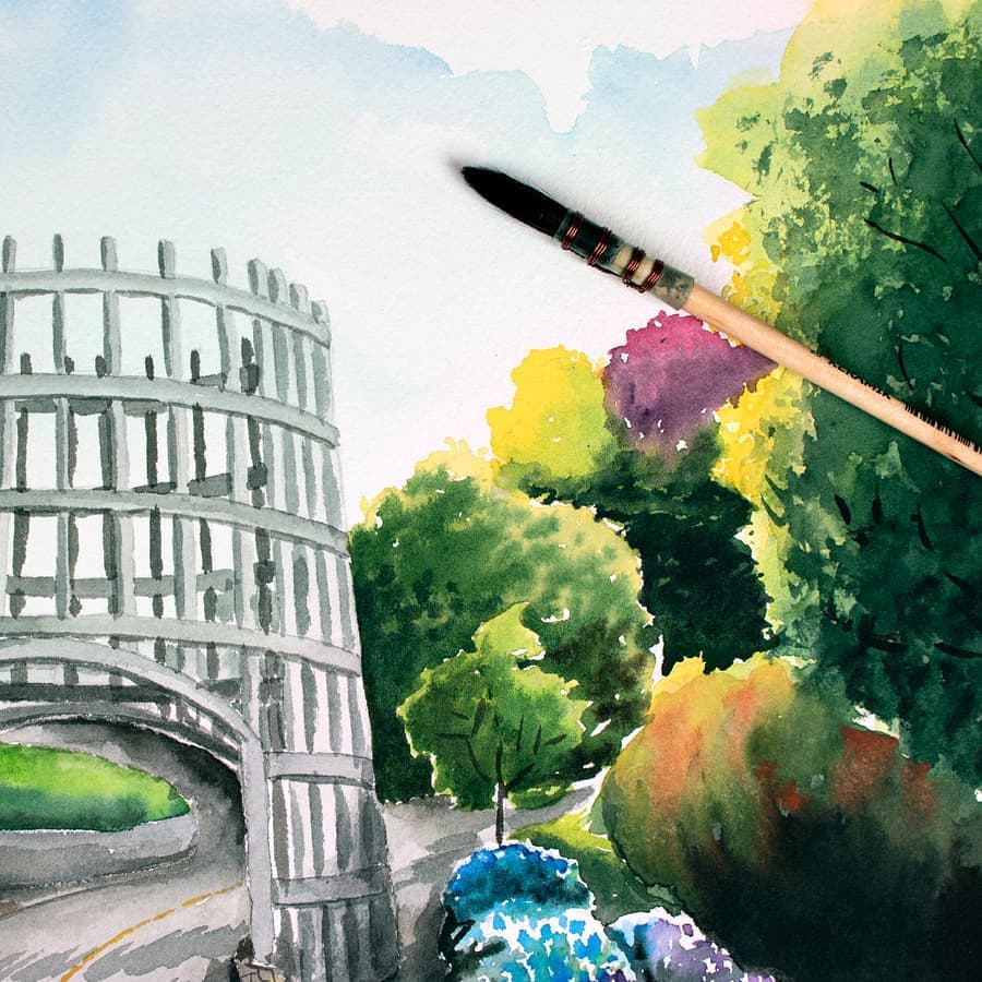 A escolha da técnica de aquarela se deve à leveza e à simplicidade com que ela é trabalhada: papel, tinta e água. "O processo de uma aquarela sempre deixa uma textura diferente, a fusão das cores e a forma como a água atua sobre o papel remetem ao exato momento no qual ela é feita", explica.