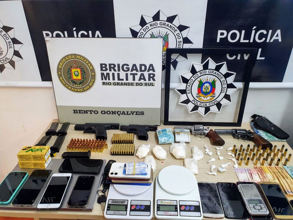 Uma operação conjunta da Polícia Civil e Brigada Militar resultou na prisão de dois homens e uma mulher na manhã desta quinta-feira, 2 de setembro, em Bento Gonçalves. Eles foram flagrados com drogas, dinheiro, armas e celulares em quatro bairros da cidade. Todos foram recolhidos à Penitenciária Estadual de Bento Gonçalves.