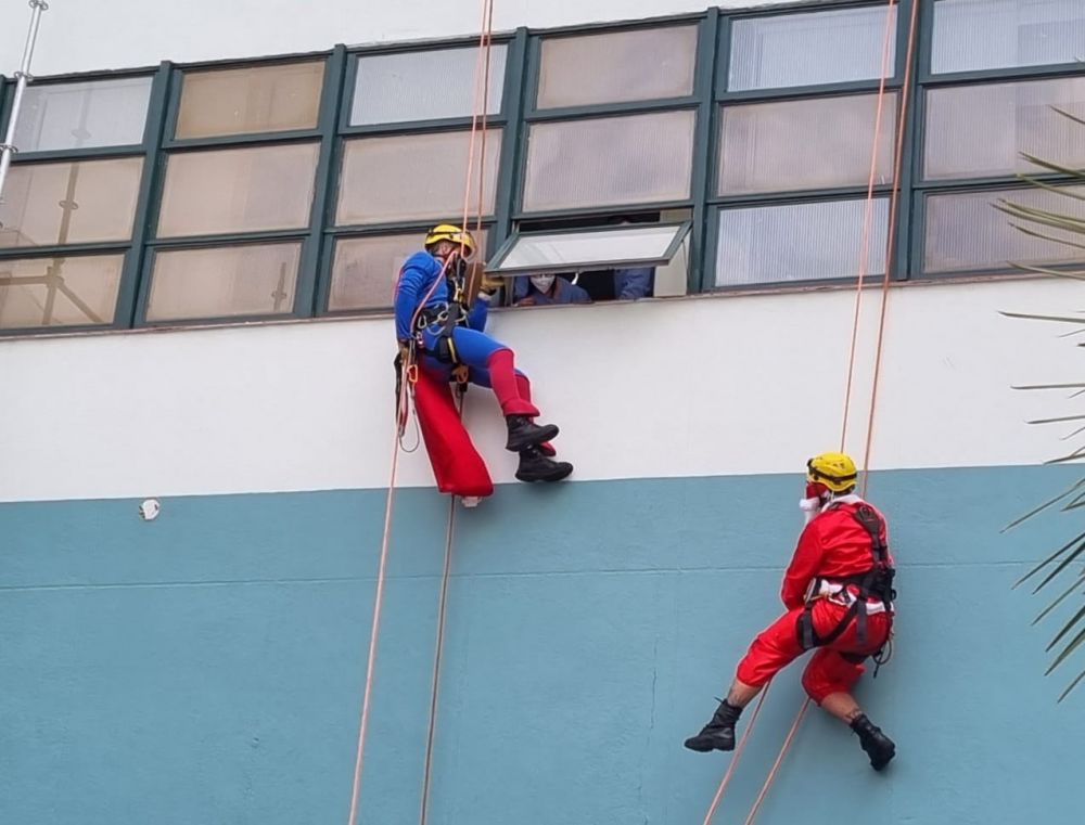 As crianças internadas na ala pediátrica do Hospital Tacchini, em Bento Gonçalves, tiveram uma tarde diferente neste sábado, 18 de dezembro. Elas foram surpreendidas com a chegada do super homem e do papai noel trazendo muitos presentes. Eles chegram de rapel na casa de saúde, fazendo a alegria dos pacientes e de funcionários do hospital.