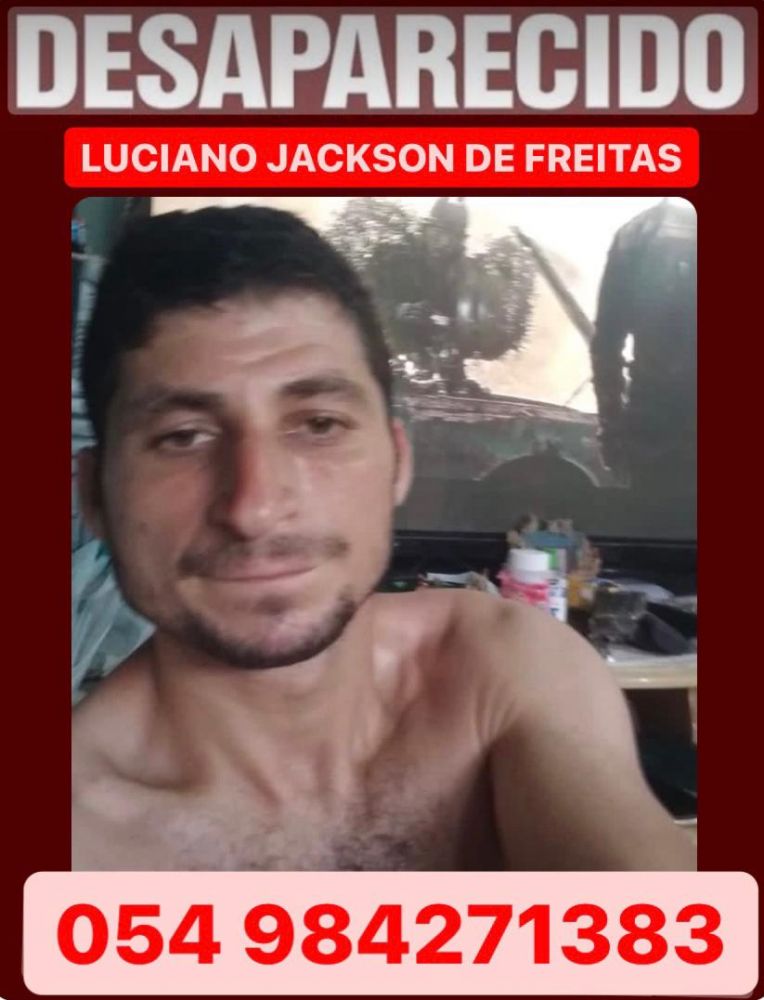 Um morador de Bento Gonçalves de 34 anos, identificado como Luciano Jackson de Freitas, está desaparecido desde o último dia 16. Segundo relato de um amigo que dividia aluguel com o homem no bairro Fenavinho, ele saiu ainda no dia 14 para passar o final de semana na casa de sua mãe, no bairro Zatt. Lá, ficou até a noite do domingo, 16, e depois não foi mais visto.