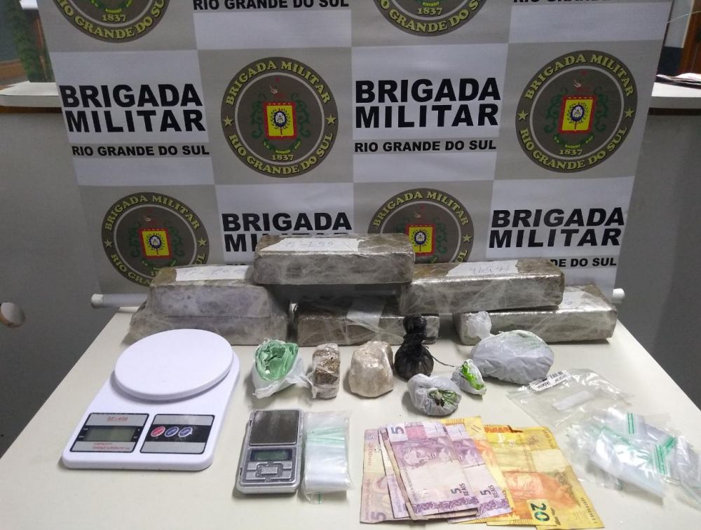 A jovem de 20 anos que estava na residência não se feriu. Em buscas no imóvel, os policiais encontraram uma mochila preta com 3,440kg de maconha, 70,89 gramas de cocaína, 123,68 gramas de crack, duas balanças de precisão e R$ 90,00 em dinheiro, além de sacos plásticos para embalar a droga.