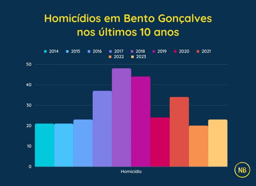 O ano de 2022, contudo, trouxe uma ligeira diminuição na taxa de homicídios, com um total de 20 casos ao longo do ano. No entanto, o panorama mudou drasticamente em 2023, com Bento Gonçalves já registrando 23 homicídios em apenas oito meses. No mesmo período do ano anterior, haviam ocorrido 12 casos, o que representa um aumento alarmante de 91%. Os crimes violentos letais intencionais (CVLI) também seguiram a mesma tendência, crescendo de oito para 22.