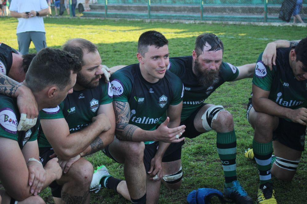 Final de jogo no Estádio da Montanha. É entoado o grito de guerra: “jogamos com garra, doamos nosso sangue, somos os Farrapos”, e logo após o grupo se reúne para ouvir atentamente a palavra do técnico Javier Cardozo. Entre ajustes, melhorias e elogios, a motivação é sempre direcionada para o jogo seguinte. Um “terceiro tempo” digno para comemorar e aproveitar, brindando a vitória com os seus atletas e com os adversários, pois o rugby é isso. Mas, no dia posterior, volta-se o foco nos estudos para o próximo desafio.