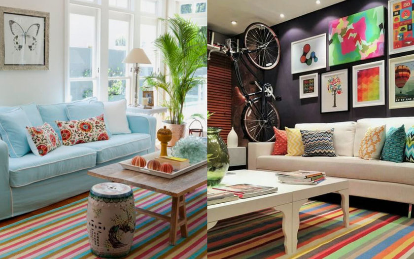 Uma decoração pontual e que não exige muitas mudanças é trocar a cor do tapete. Os com listras coloridas prometem ser a sensação da temporada primavera/verão 2019!