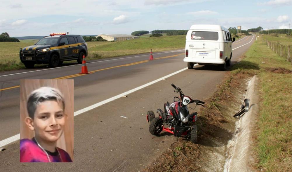 Jovem de apenas 12 anos andava com o veículo pela rodovia, quando perdeu o controle e colidiu contra uma Kombi.