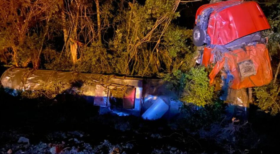 Condutor perdeu o controle do veículo no quilômetro 174 da rodovia e morreu após ser levado ao hospital pelo Corpo de Bombeiros.