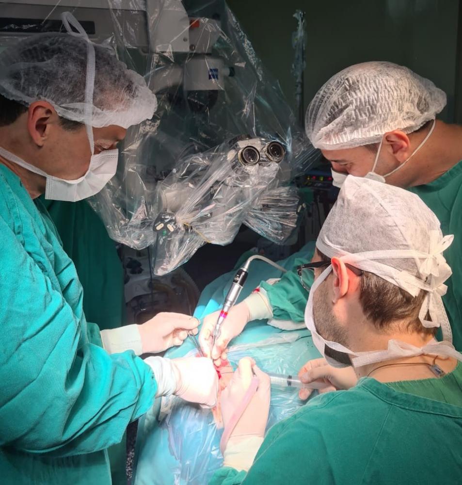Procedimento possibilitará que paciente de 30 anos, com surdez severa, ouça pela primeira vez sem o auxílio de aparelho convencional. Operação de mais de 2h foi realizada no Hospital Saúde, em Caxias do Sul, e envolveu cerca de 10 profissionais.