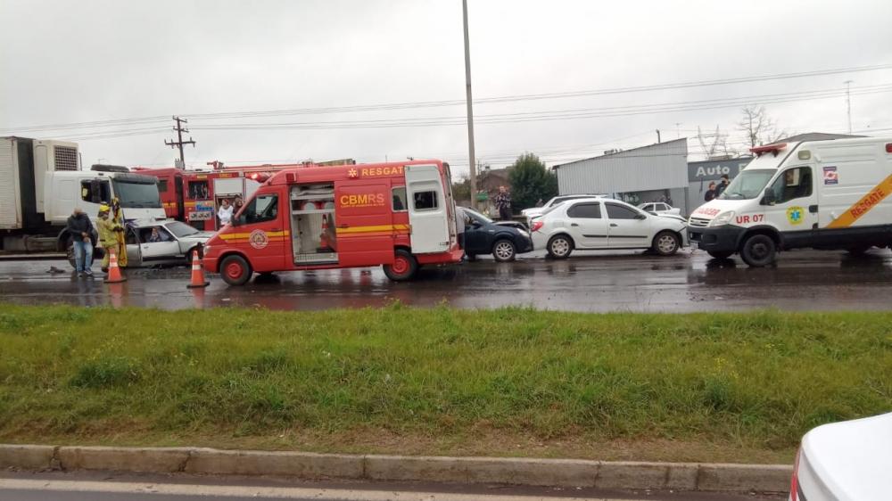 Engavetamento deixa cinco feridos na ERS 122 em Farroupilha