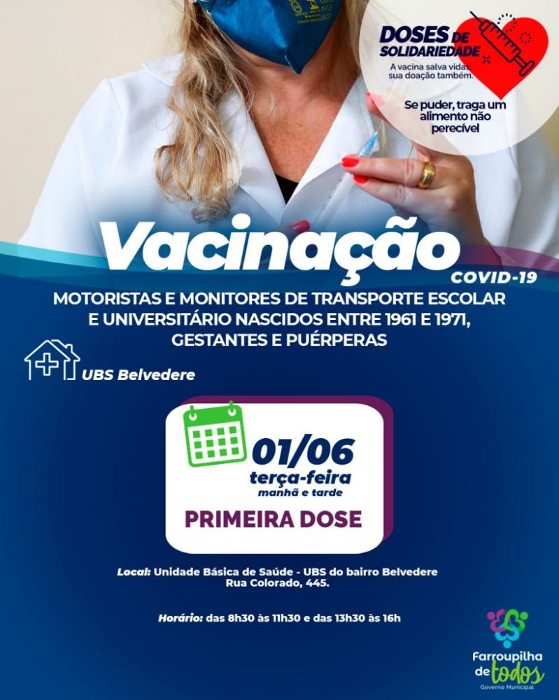 Farroupilha: Motoristas e monitores de transporte escolar, gestantes e puérperas serão imunizados nesta terça, 1º