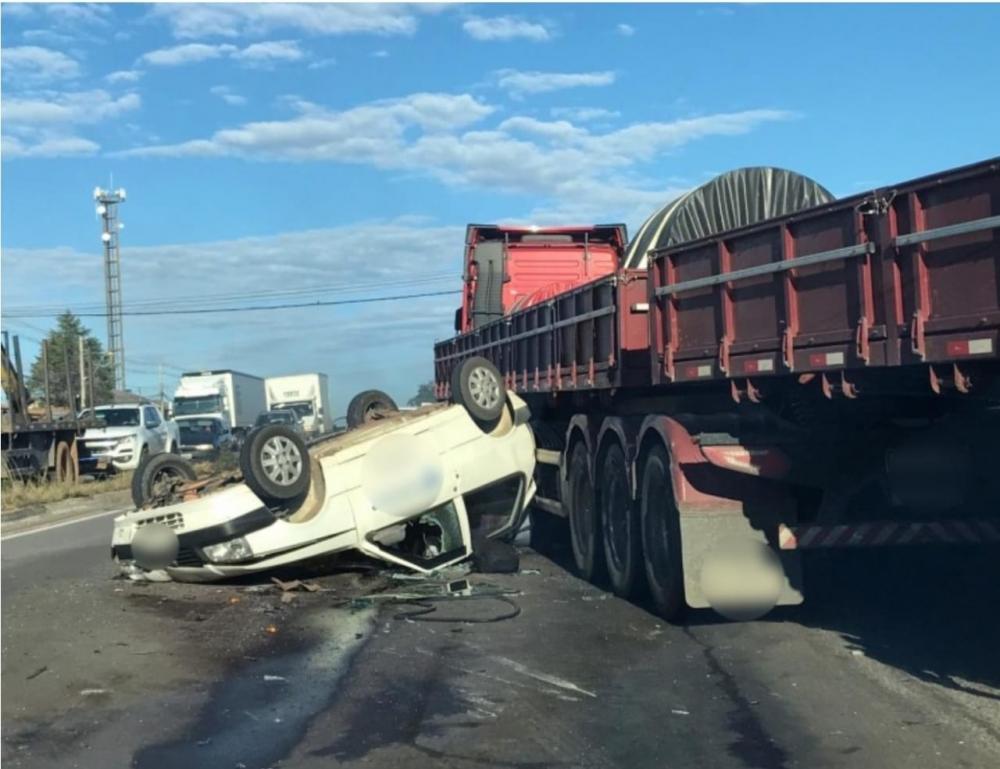 Automóvel Palio e caminhonete Ford Ranger colidiram no quilômetro 119 da rodovia, no trevo de acesso à Farroupilha.