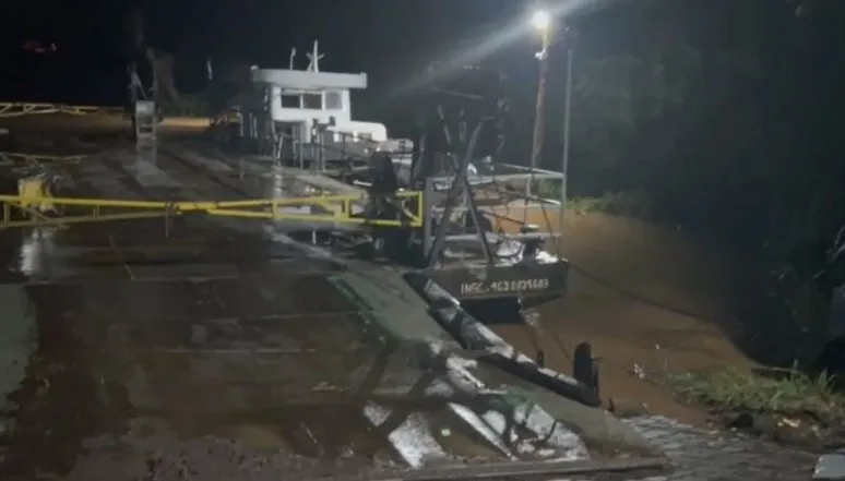 Segundo os operadores da embarcação, o Rio Taquari está enchendo rapidamente e há riscos em continuar a travessia.