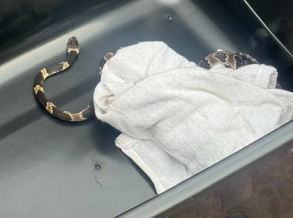 A jararaca é responsável pela maioria dos incidentes com serpentes no Brasil, e embora este fosse um filhote, a espécie é reconhecida por seu veneno perigoso.