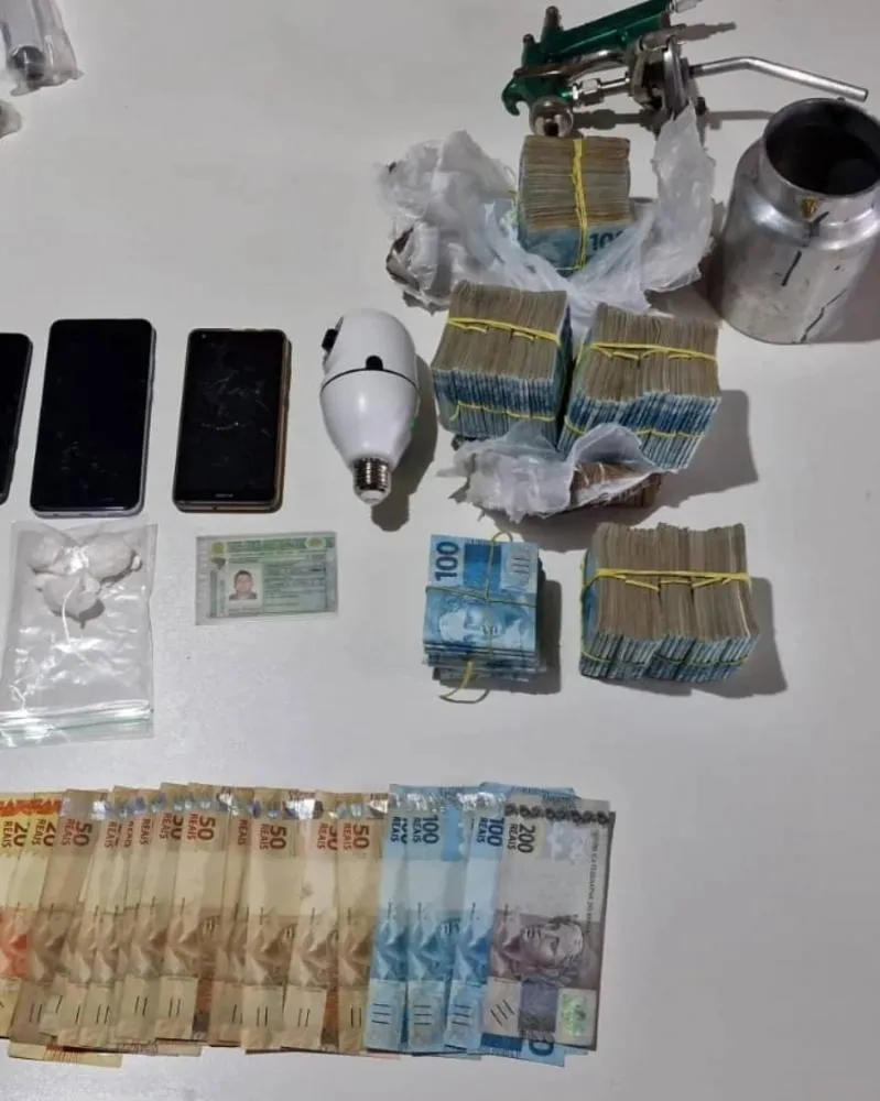 Segundo a Polícia Civil, dinheiro era oriundo do tráfico de drogas. Armas e cocaína também foram apreendidas.