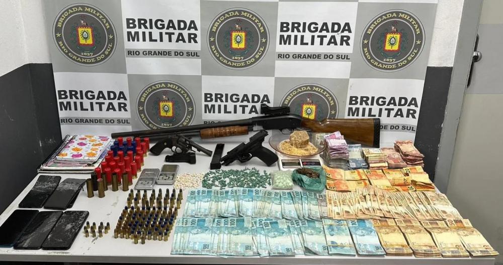 Com eles, foram apreendidos armas, drogas e R$ 27 mil em espécie.