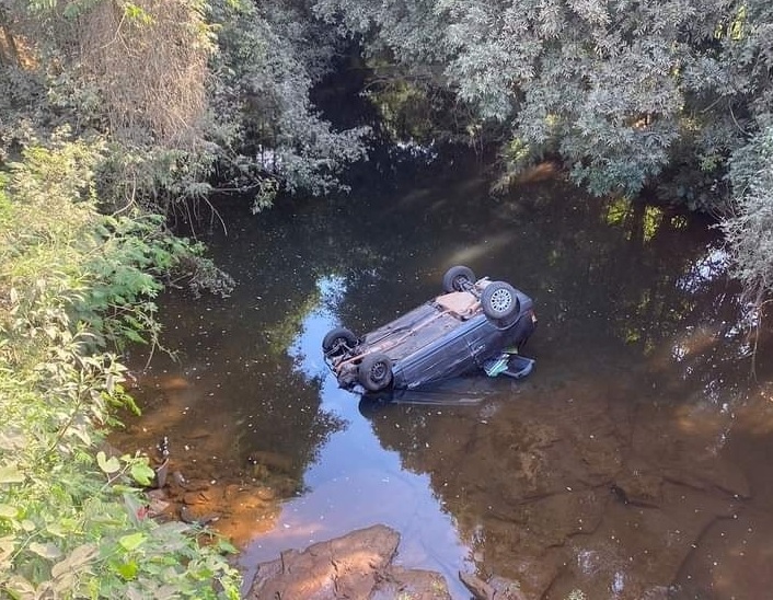 Carro despenca de ponte em zona rural de Serafina Corrêa